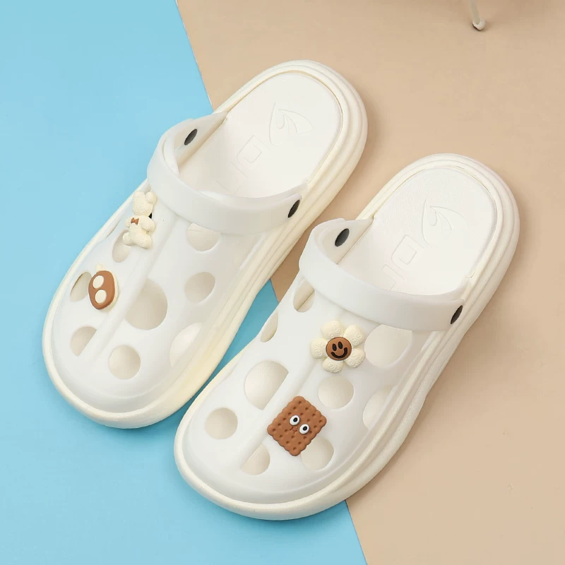 dep di bien nam Giày Croc đế dày dành cho cặp đôi nữ Áo khoác ngoài mùa hè Đế mềm chống trượt Màu trắng y tá Baotou Dép đi biển nửa dép dép tông nữ đi biển giày mang đi biển