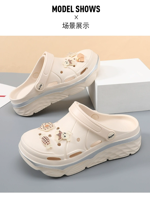 Giày Croc nữ Mùa hè 2023 Người nổi tiếng Internet Thời trang mới Baotou Half Drag Giày đế dày với cảm giác chết tiệt cho áo khoác ngoài Dép và dép đi biển dép tông đi biển nam