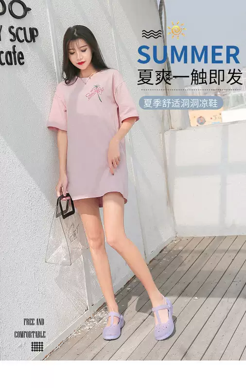 Mùa Hè Dép Xốp Nữ Chống Trơn Trượt Độ Dốc Gót Y Tế Mũi Lớn Chống Thấm Nước Giày Đi Biển Và Dép Ngón Chân y tá Lỗ Giày dẹp quai hậu dép quai hậu nữ đế cao 7cm